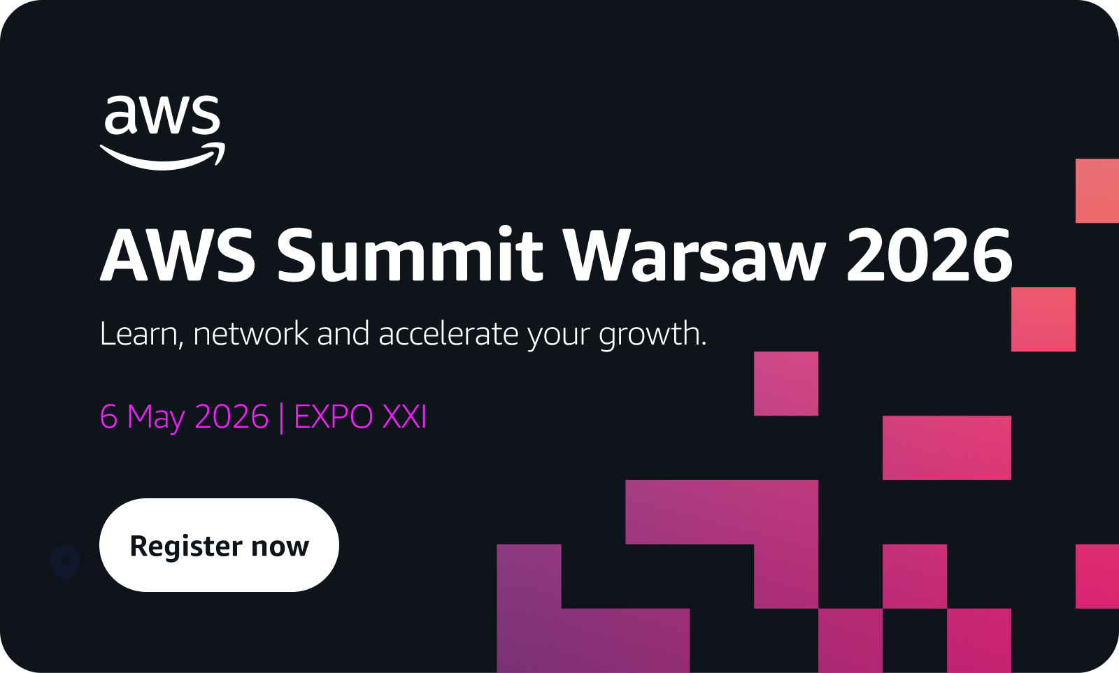 Join AWS Summit Warsaw on 6 May 2026 at EXPO XXI — free one-day cloud & AI event with 80+ sessions, hands-on demos, and top industry speakers. Seats limited.
